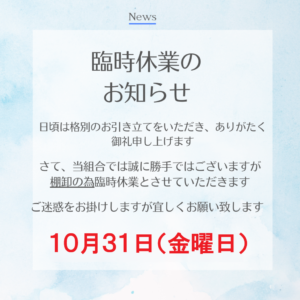 当組合では誠に勝手ではございますが棚卸しの為、下記の日程にて臨時休業させていただきます。